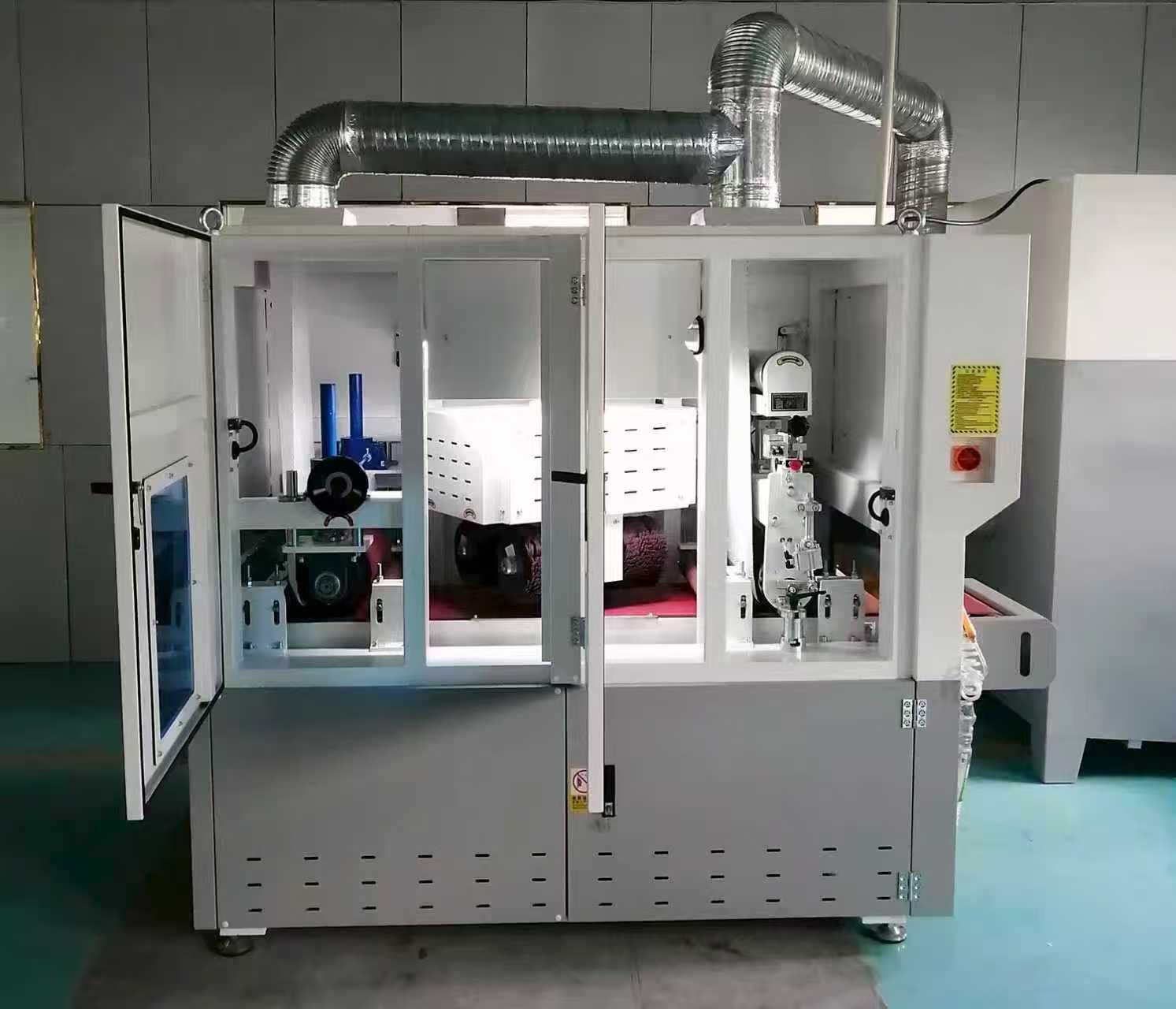 يتكون الهيكل الداخلي لـ 450RPT من مجموعة واحدة من الأحزمة الكاشطة + أربع فرش أسطوانية + أسطوانة تلميع واحدة، ونظام معالجة التشكيل. يتم استخدام الحزام الكاشطة الأول في الإزالة الأولية للنتوءات من سطح قطعة العمل؛ المرحلة الثانية مع أربع فرش دوارة تقوم بإجراء معالجة بالفرشاة، مما يضمن إزالة الأزيز بشكل كامل دون الإضرار بالسطح؛ وأخيرًا، تقوم أسطوانة التلميع بإجراء تلميع دقيق، مما يجعل السطح أملسًا وموحدًا ومصقولًا بصريًا. بفضل هيكلها المصمم جيدًا، فإن ماكينة تشطيب المعادن تمكن من معالجة الأسطح بكفاءة، وثبات، ومستمر.