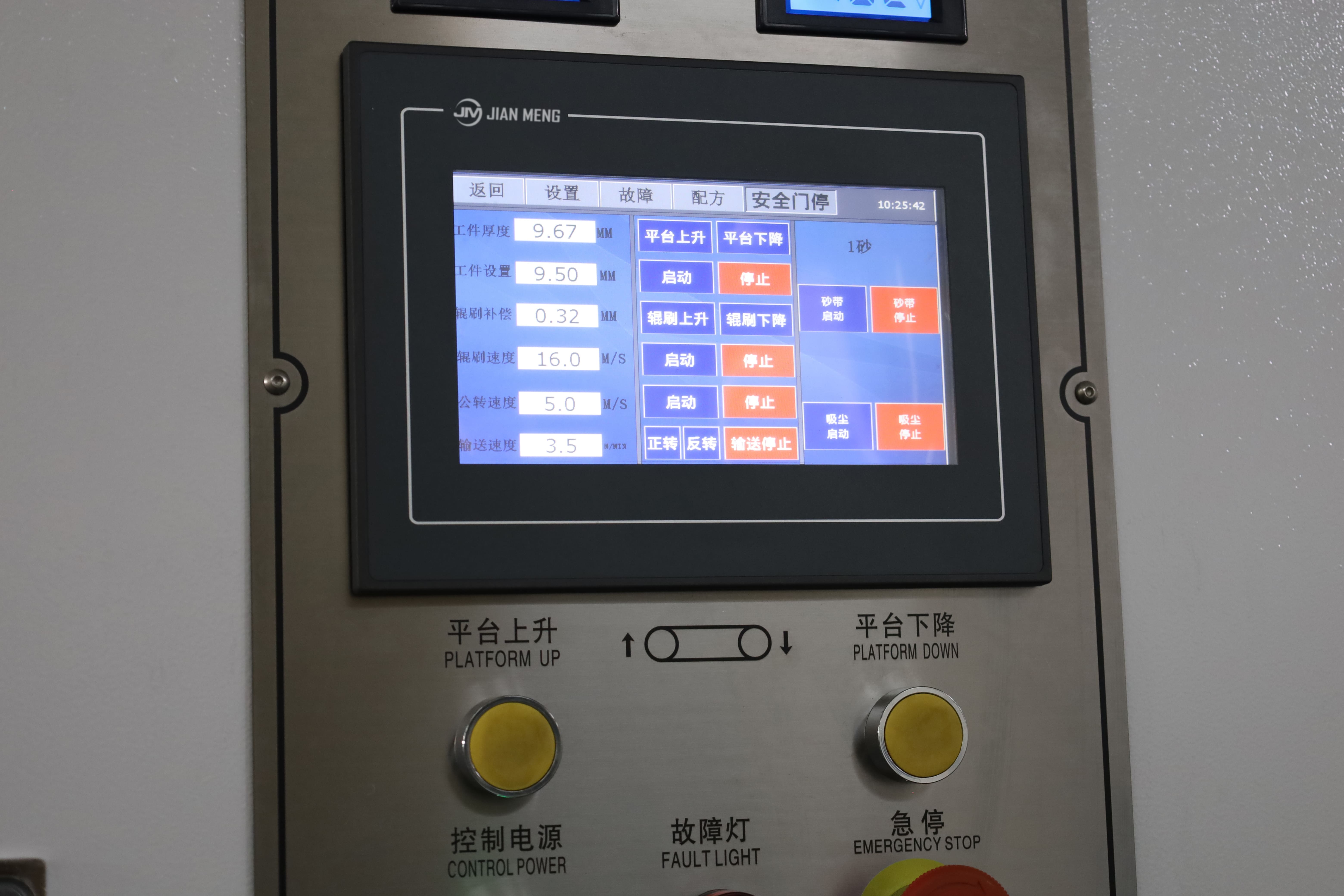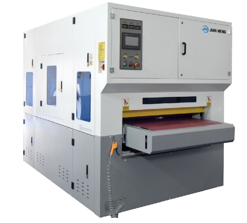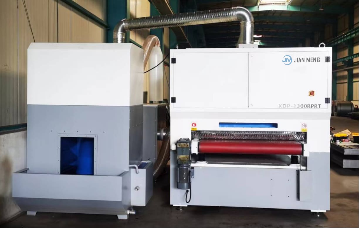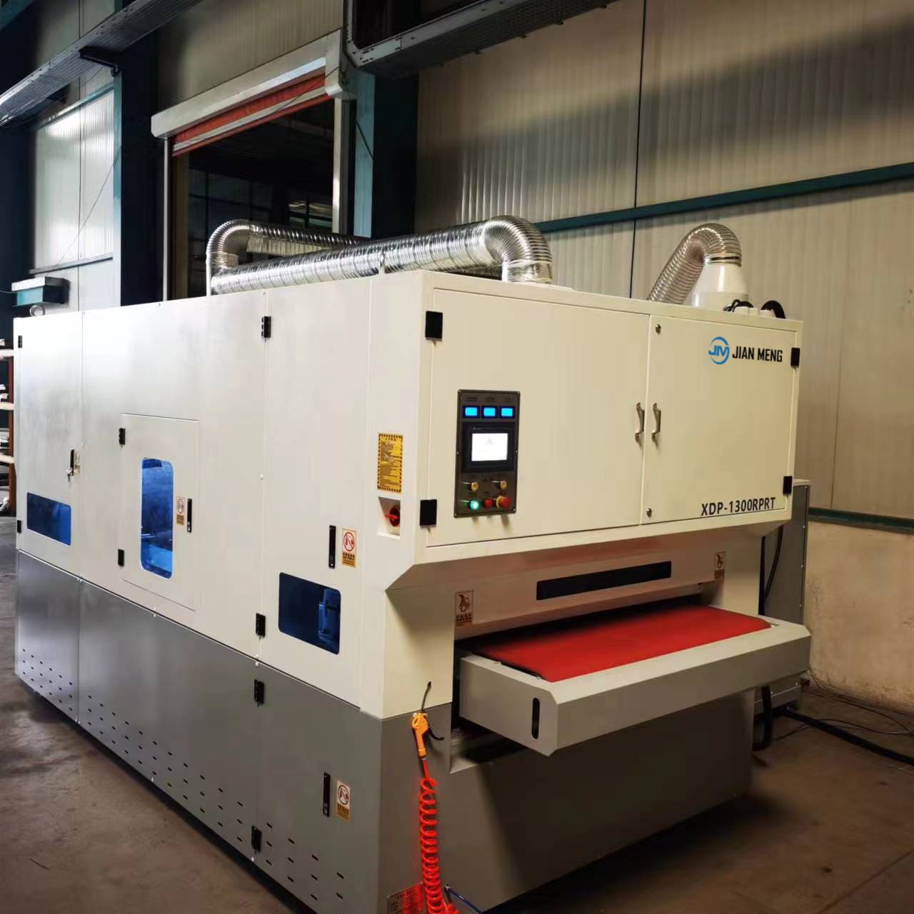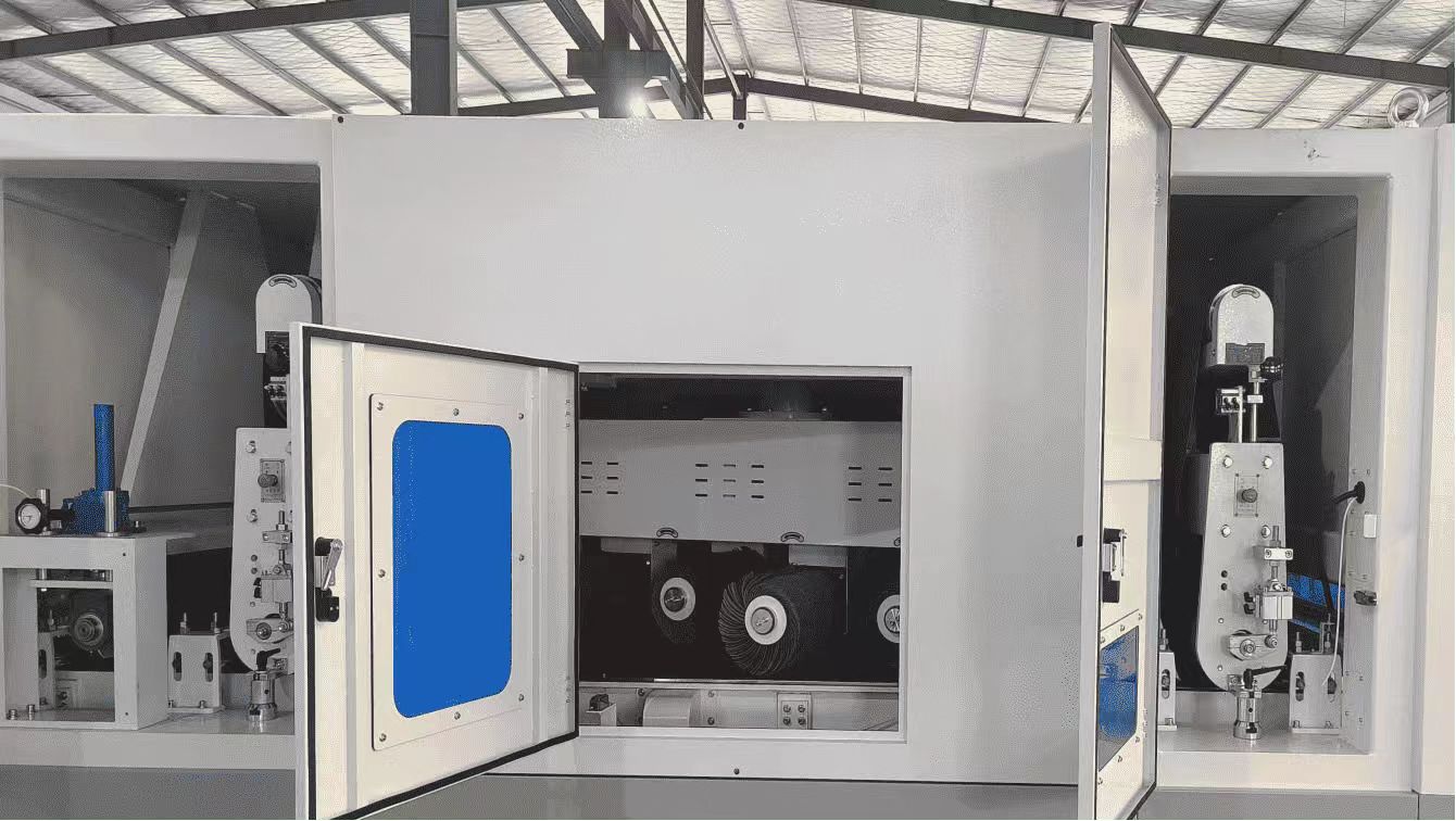 يتكون الهيكل الداخلي لـ 1000RPRT من مجموعة واحدة من الأحزمة الكاشطة + ثماني فرش دوارة + مجموعة واحدة من الأحزمة الكاشطة + أسطوانة تلميع واحدة، مما يشكل نظام معالجة من أربع مراحل. يتم استخدام الحزام الكاشطة الأول في الإزالة الأولية للنتوءات من سطح قطعة العمل؛ المرحلة الثانية المزودة بثماني فرش دوارة تقوم بإجراء معالجة بالفرشاة، مما يضمن إزالة الأزيز بشكل كامل دون الإضرار بالسطح؛ توفر المجموعة الثانية من الأحزمة الكاشطة مزيدًا من الطحن الدقيق لتحسين تسطيح السطح؛ وأخيرًا، تقوم أسطوانة التلميع بإجراء تلميع دقيق، مما يجعل السطح أملسًا وموحدًا ومصقولًا بصريًا. بفضل هيكلها المصمم جيدًا، فإن ماكينة تشطيب المعادن تمكن من معالجة الأسطح بكفاءة، وثبات، ومستمر.