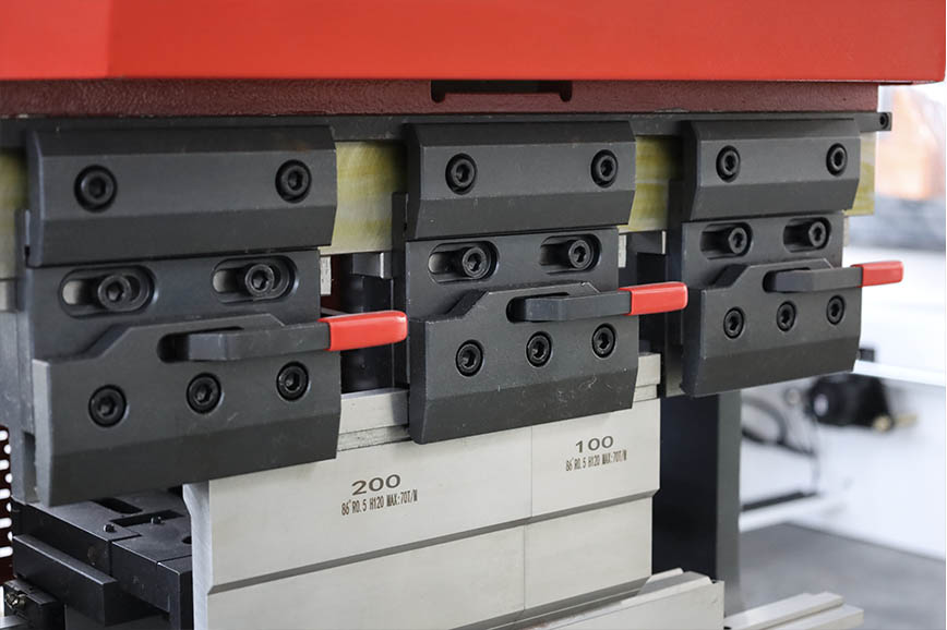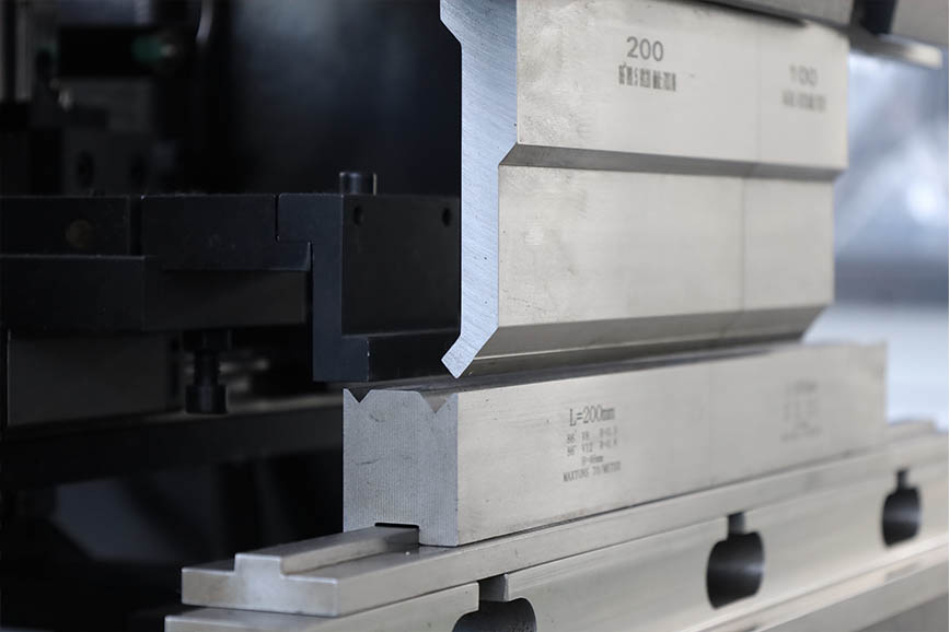 تعد أدوات مكابح الضغط هي المكون الأساسي لمكابح الضغط، وتتكون من المثقاب والقالب. أثناء التشغيل، ينزل المثقاب ويدفع الصفائح المعدنية إلى الفتحة على شكل حرف V للقالب، مما يؤدي إلى ثنيها بدقة في الزاوية والشكل المطلوب. إنها أداة أساسية لتصنيع مكونات الصفائح المعدنية المختلفة.
