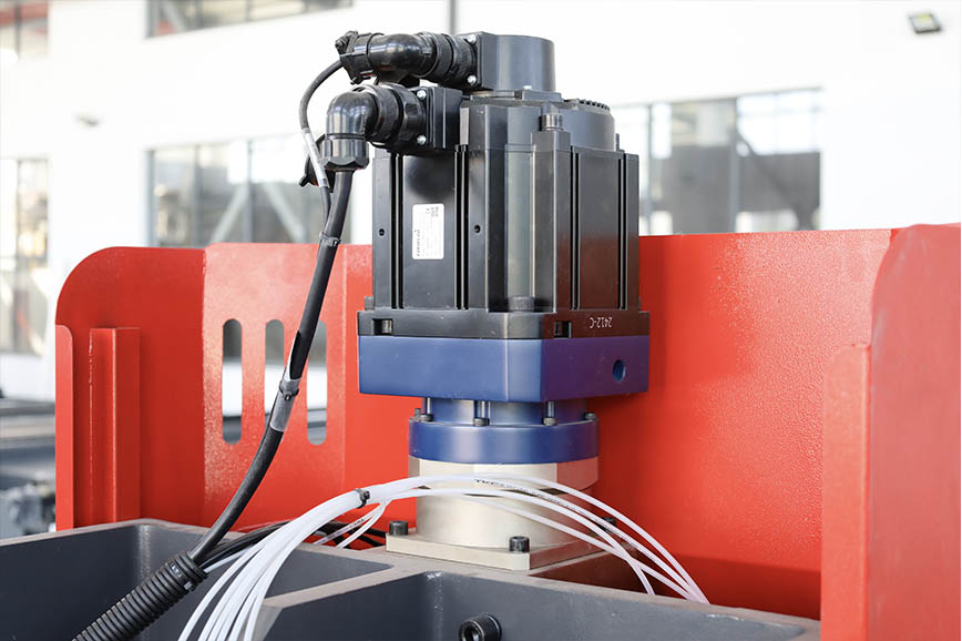 مركز التحكم المتكامل، المصمم خصيصًا لفرامل الضغط الكهربائية. فهو يقوم بمزامنة محركات مؤازرة متعددة على المحور Y من خلال أجهزة تشفير بصرية عالية الدقة، مما يتيح تحديد المواقع بدقة، والتحكم في القوة، وتعويض الانحراف التلقائي (مثل المحور V) بدون مكونات هيدروليكية.